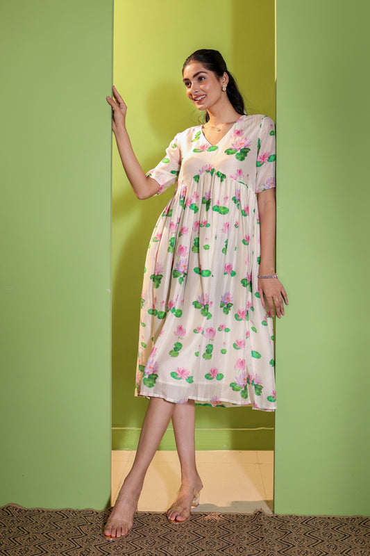 Ivory Lotus A Line Dress