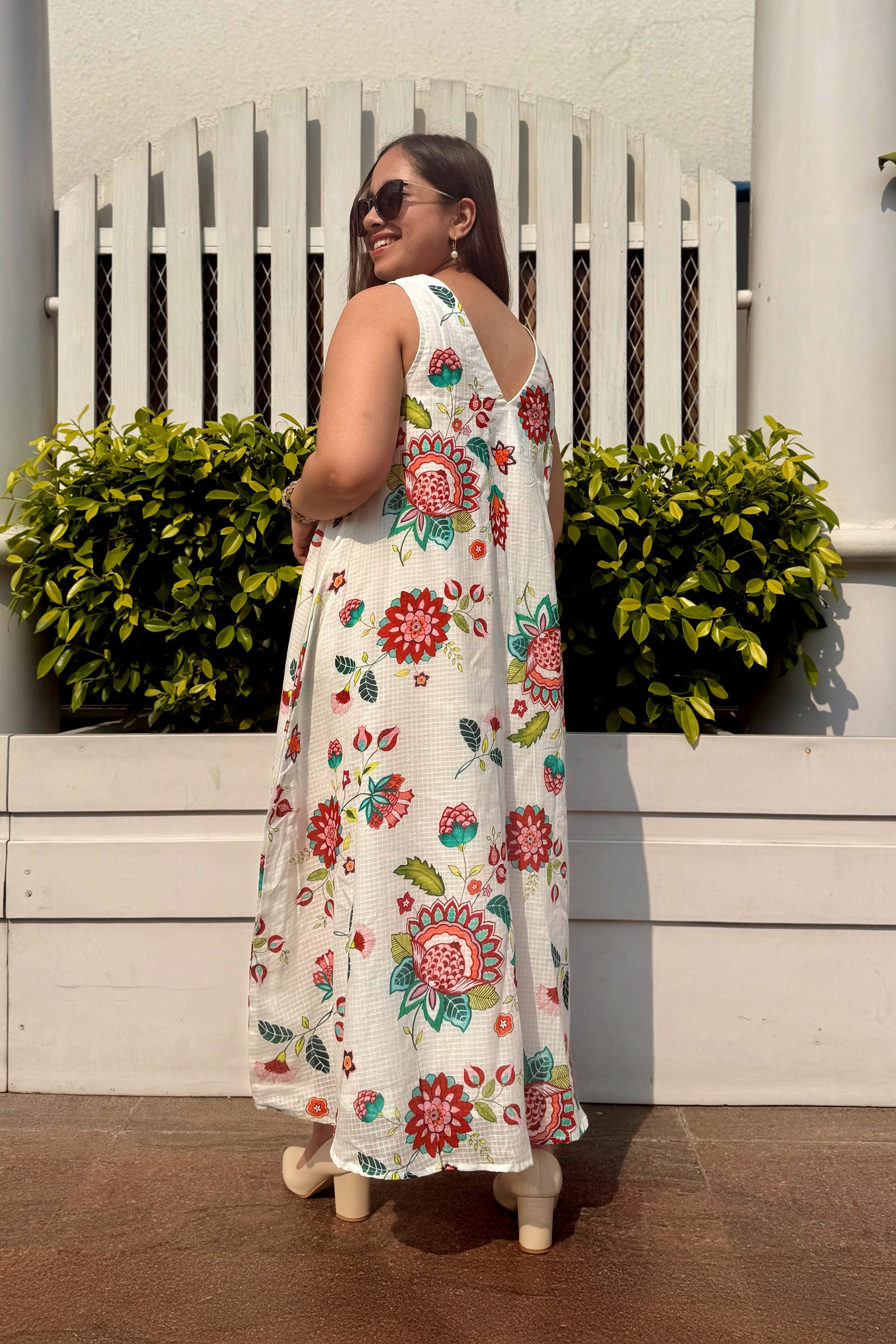 Graceful, timeless, and effortlessly flattering — the Gul A-Line Dress captures the beauty of Mughal florals in a silhouette made for ease and movement.