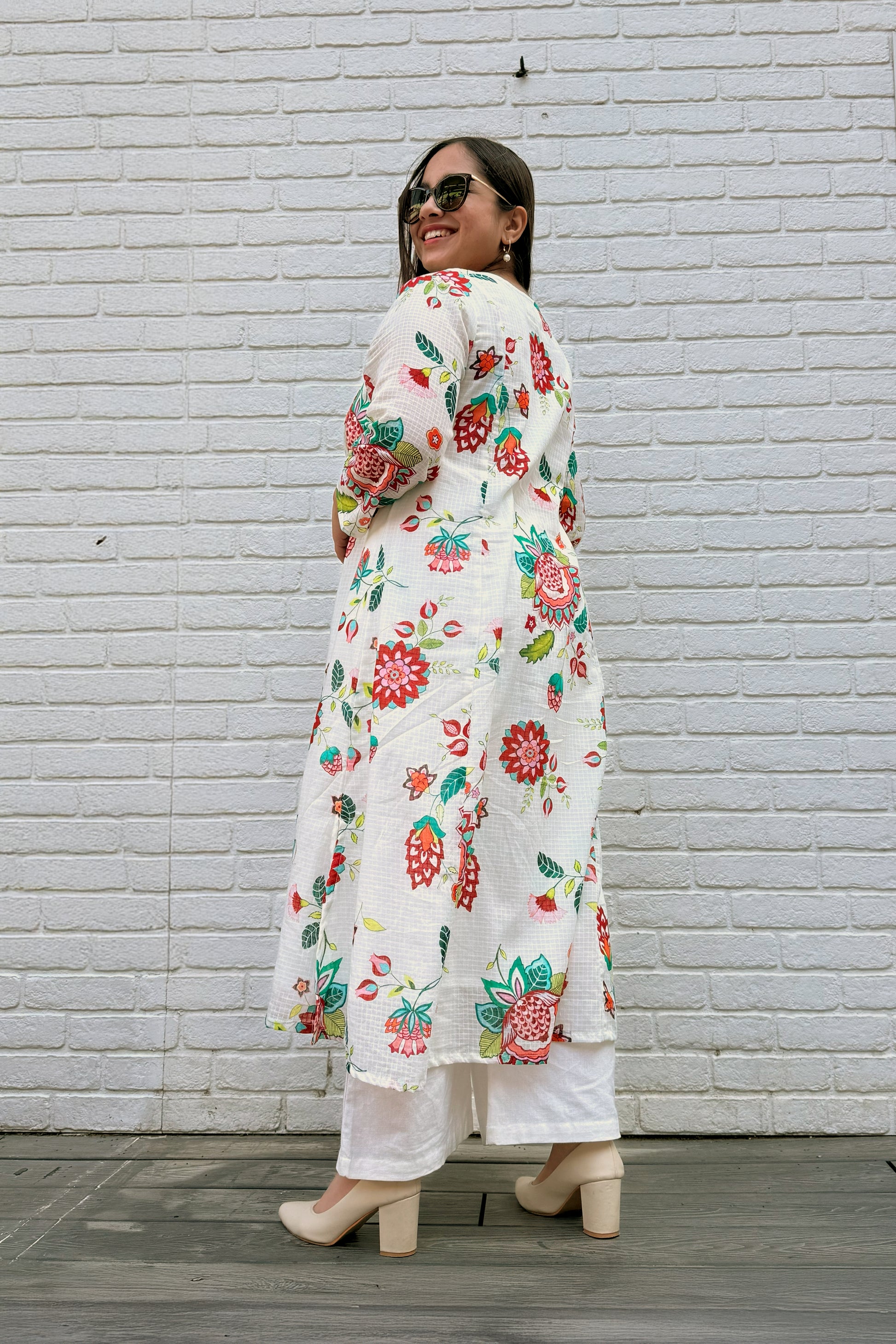 Adorned in our Gul print, inspired by intricate Mughal florals, it’s a celebration of femininity, comfort, and quiet luxury — perfect for sunlit days, festive gatherings, or serene evenings at home.